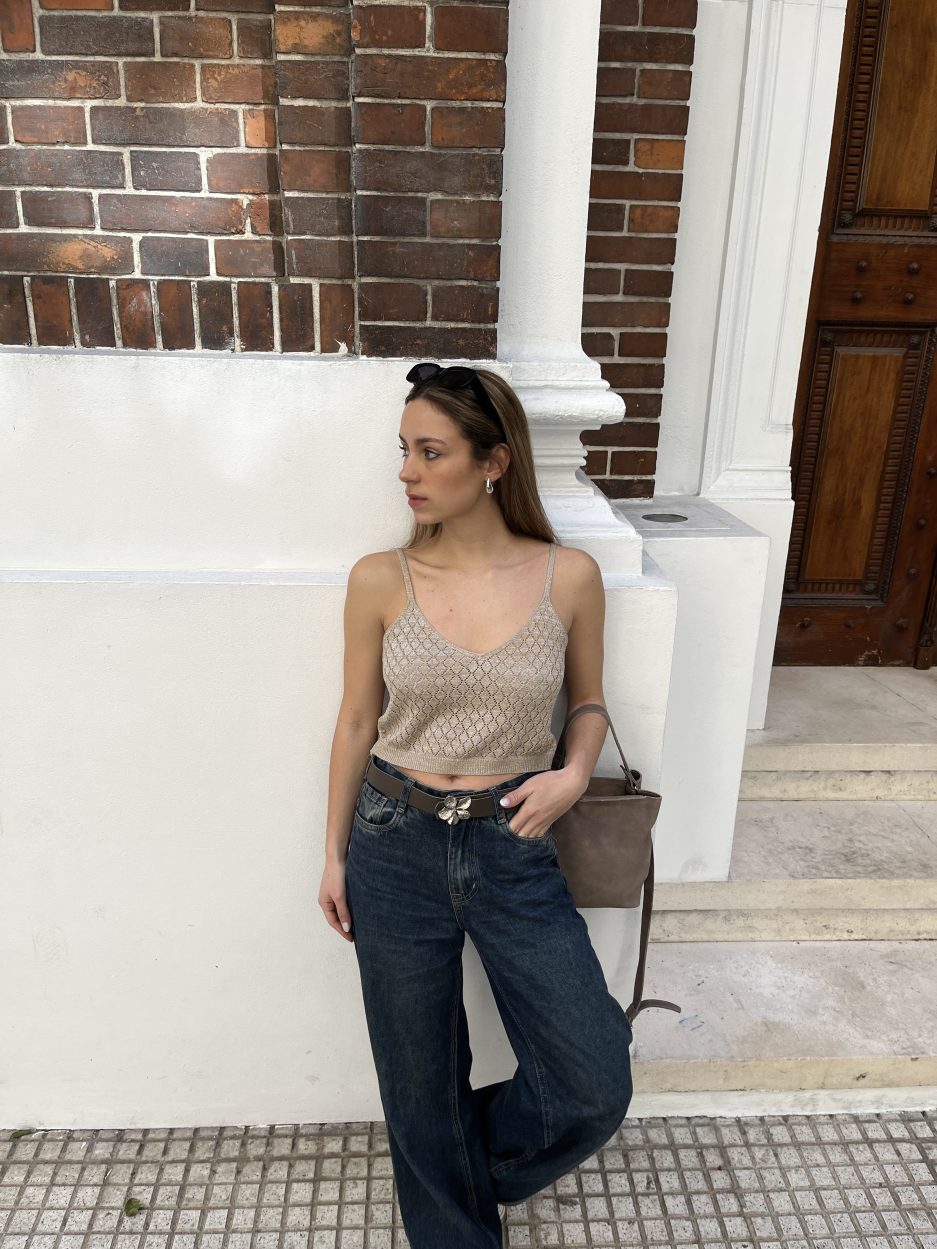 Musculosa tejida en hilo de lycra con lurex. Talle único.