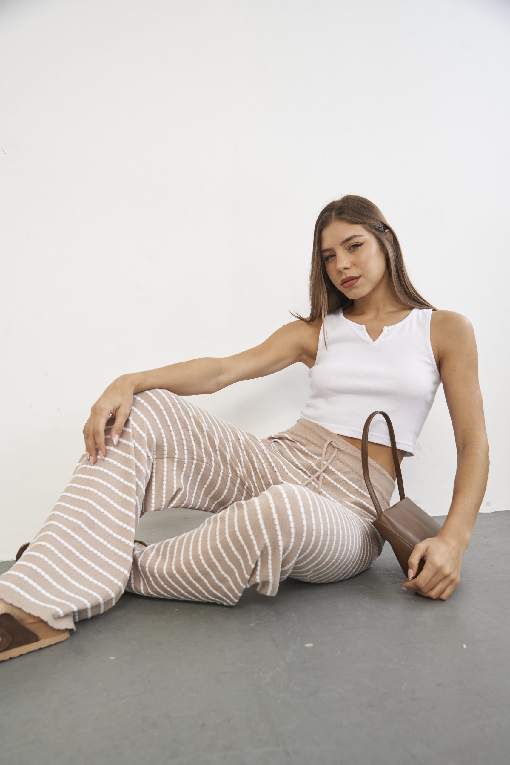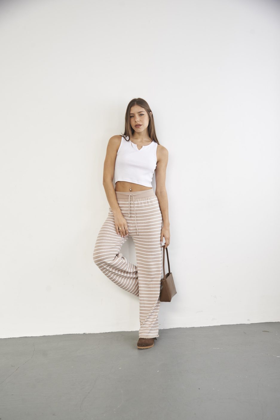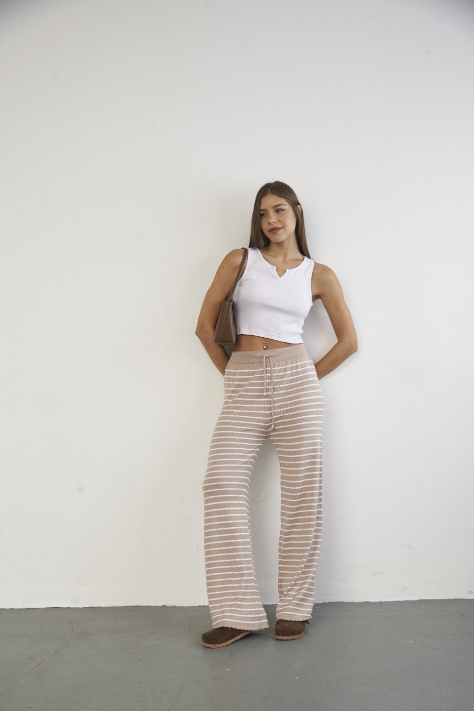 Pantalón rayado tejido en hilo de lycra. Talle único (sería un Talle M).