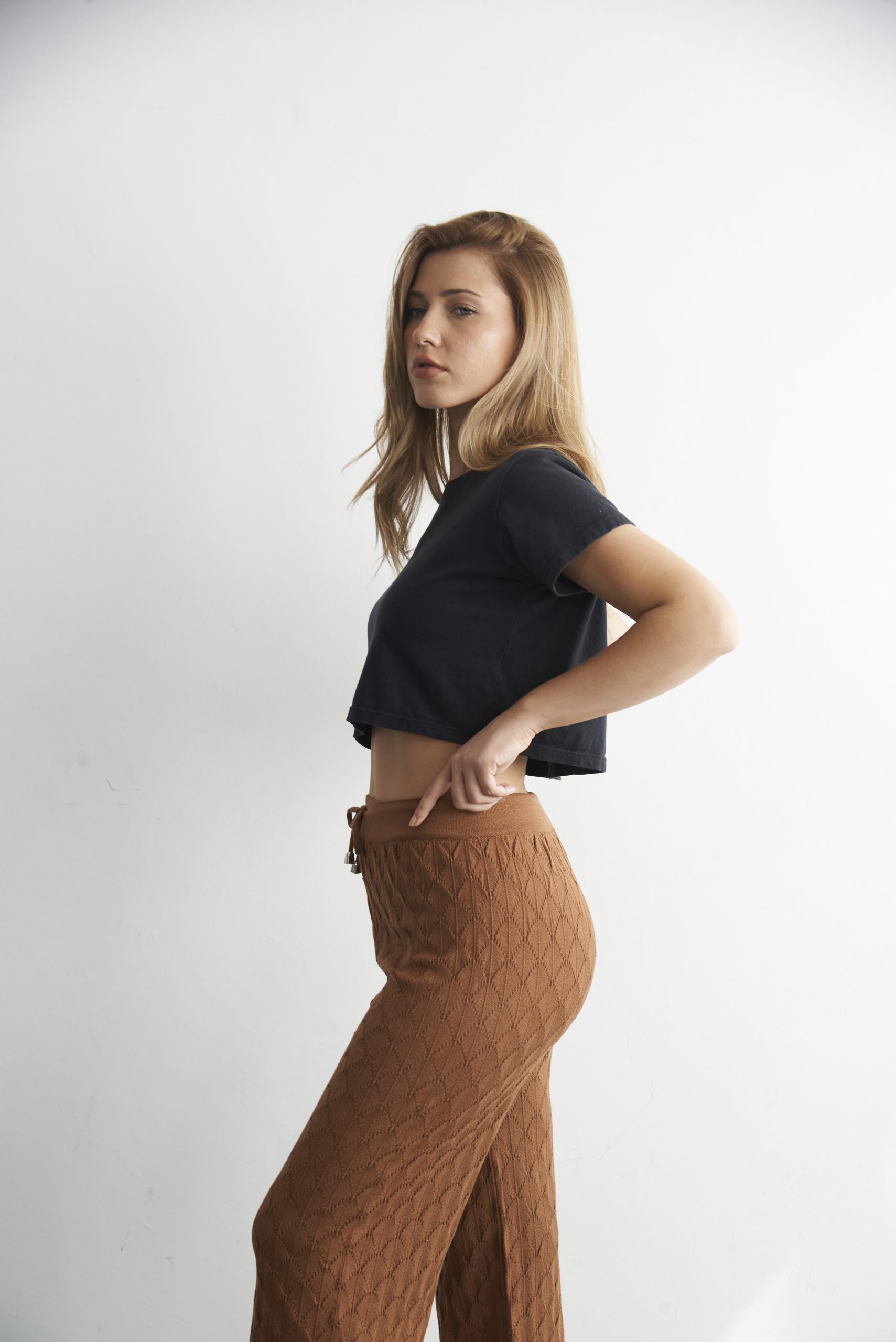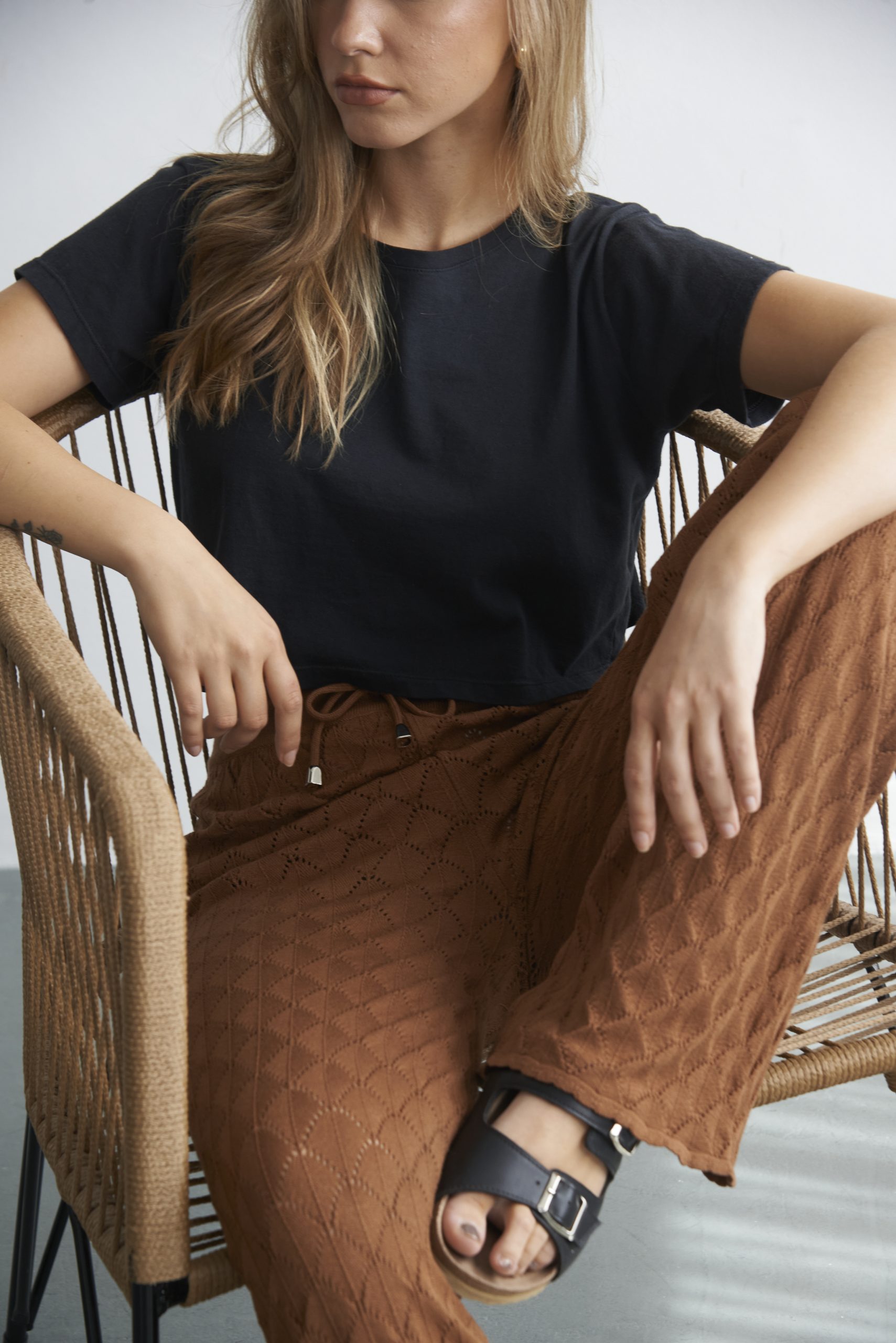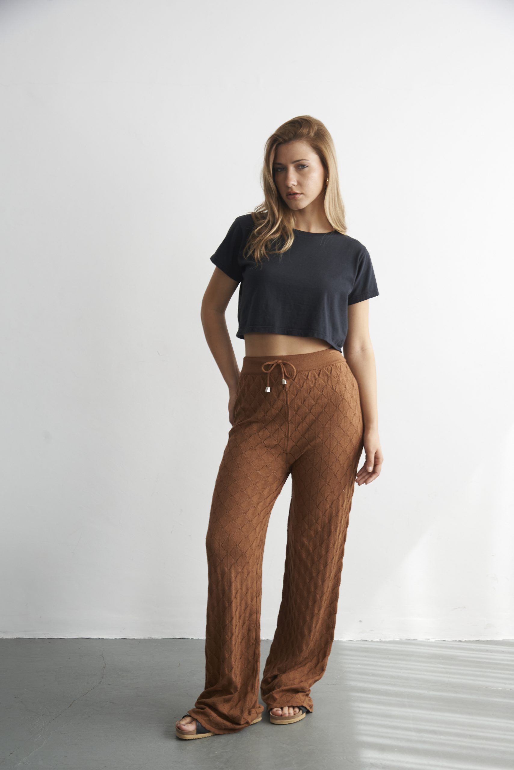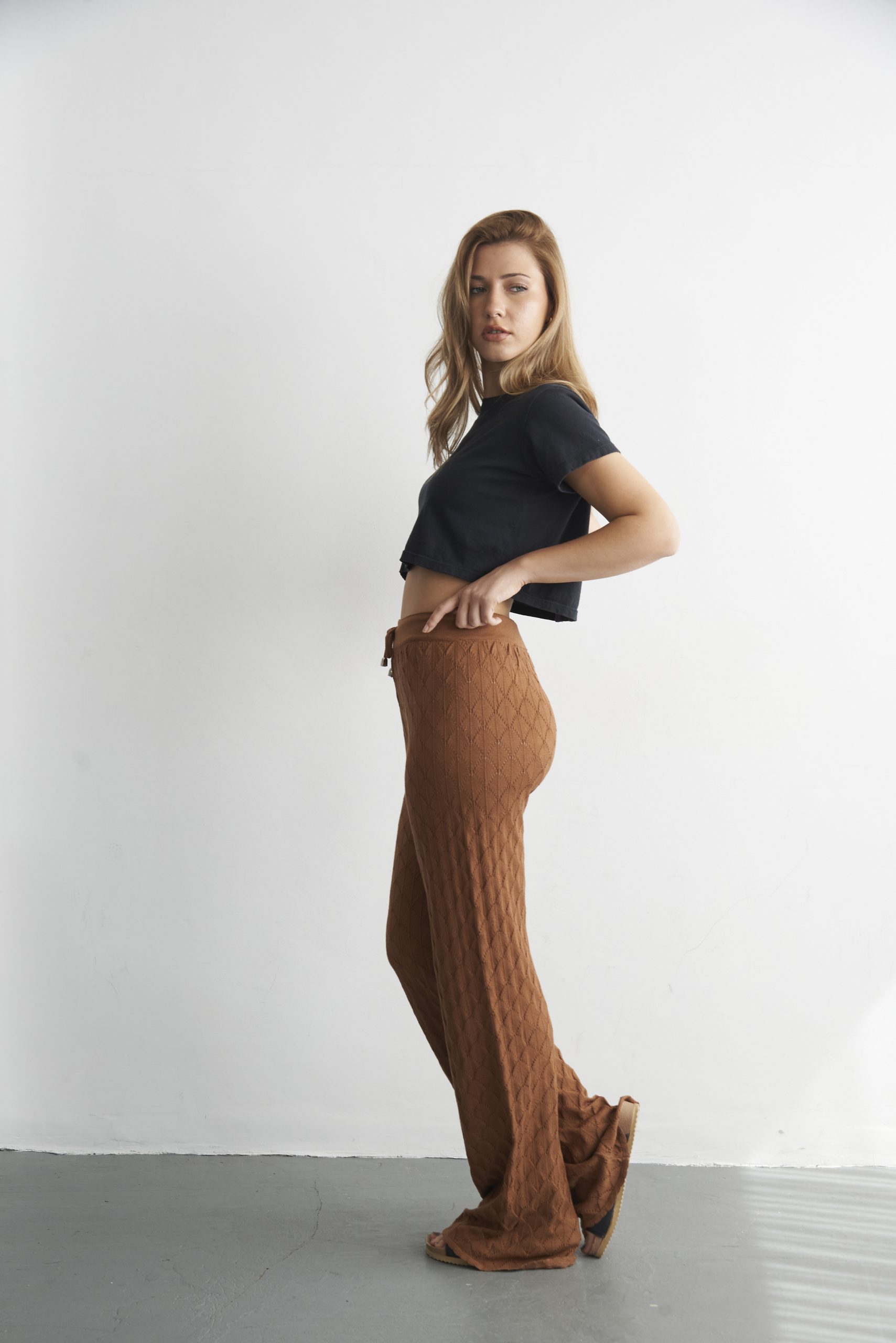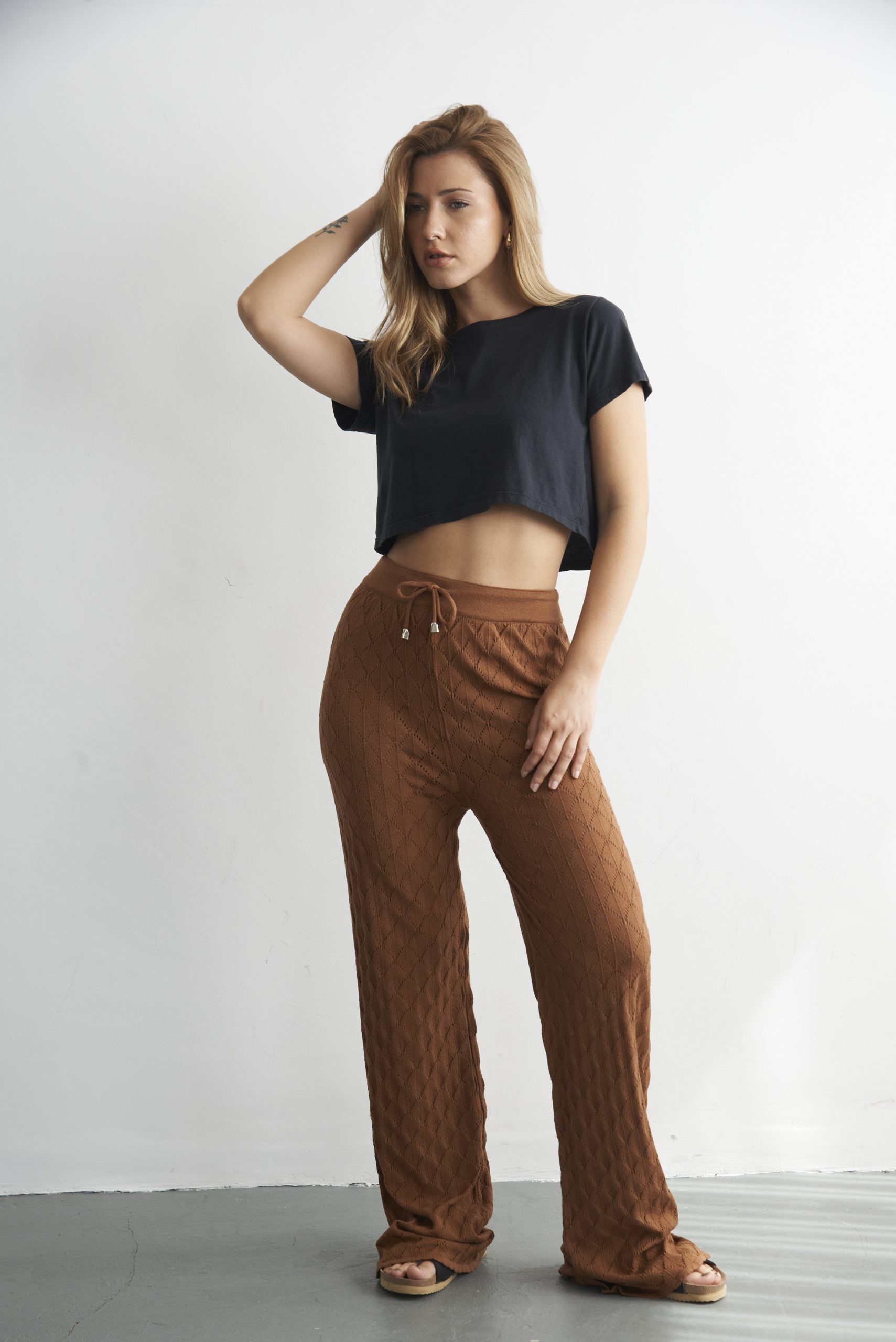 Pantalón calado tejido en hilo de lycra. Talle único (sería un Talle M).