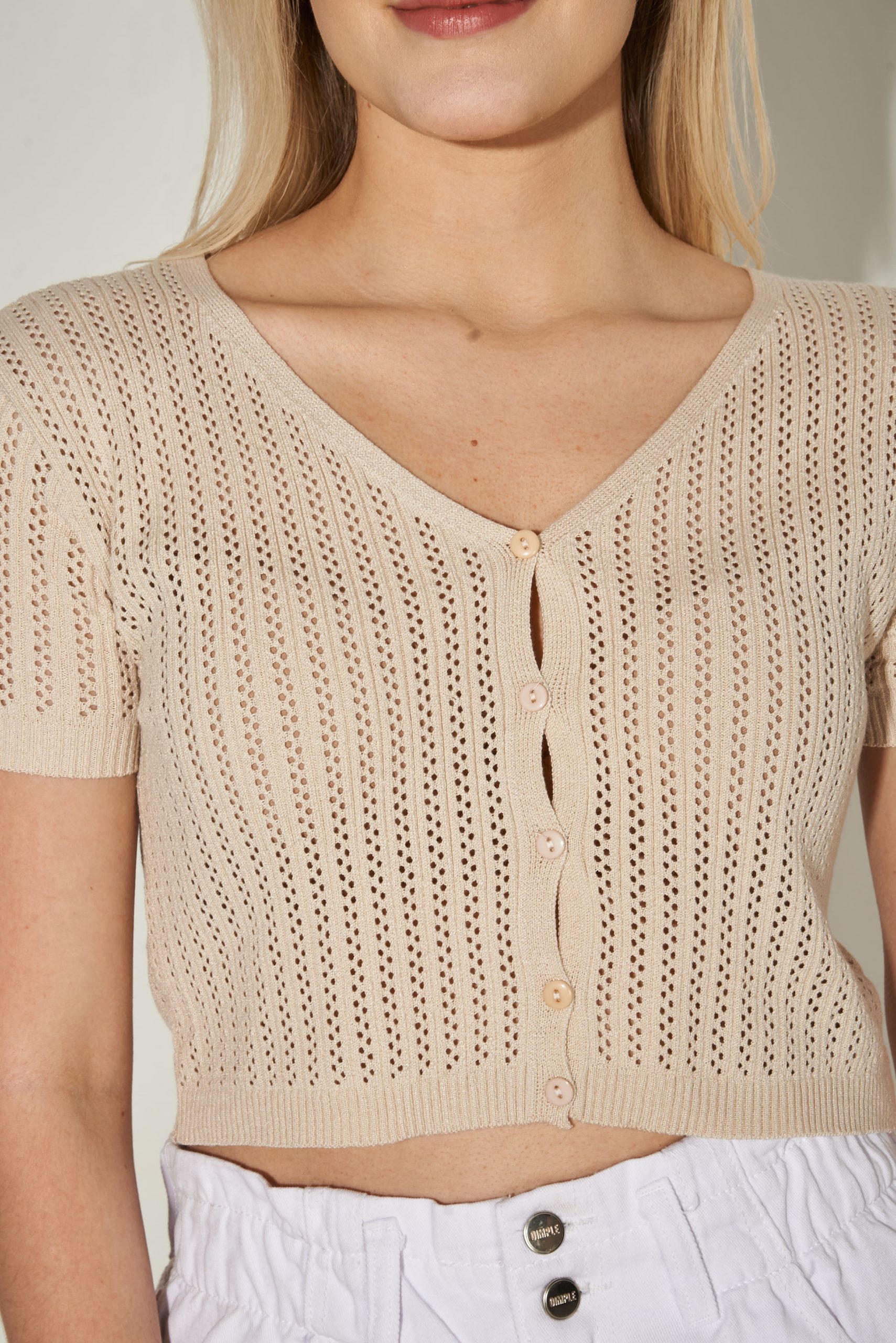 Saco tejido en hilo de lycra calado con botones. Talle único.