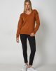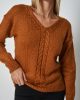 Sweater en cuello V tejido en hilo grueso. Talle único.