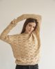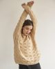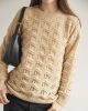 Sweater tejido en hilo grueso con detalles calados. Talle único.