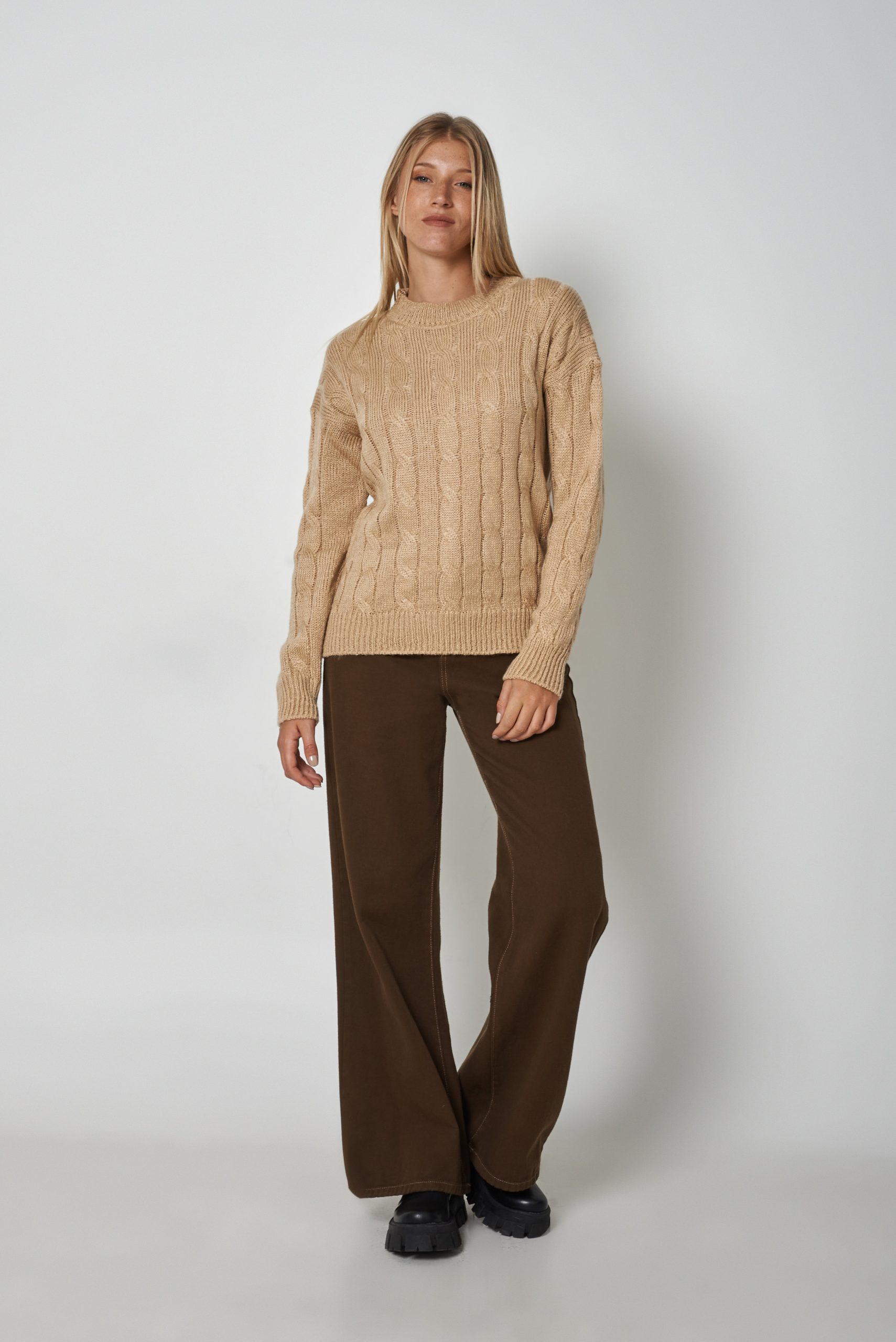 Sweater trenzado tejido en hilo grueso. Talle único.